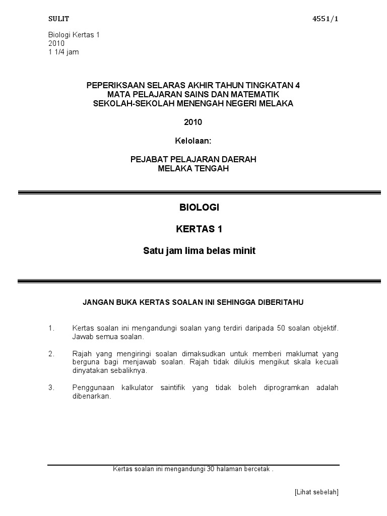 Contoh Soalan Bahasa Melayu Spm Kertas 1 Dan 2 2021-11-10T130400-0800 Rating. Biologi Biology SPM. Soalan Akhir Tahun Biologi Tingkatan 4 adalah antara bahan-bahan terbaik yang kami adaBahan yang terdapat di sini memenuhi keperluan Pentaksiran Berasaskan Sekolah yang dilaksanakan secara menyeluruh mengikut prinsip bahawa semua mata pelajaran yang terkandung dalam KSSM memainkan peranan yang penting.